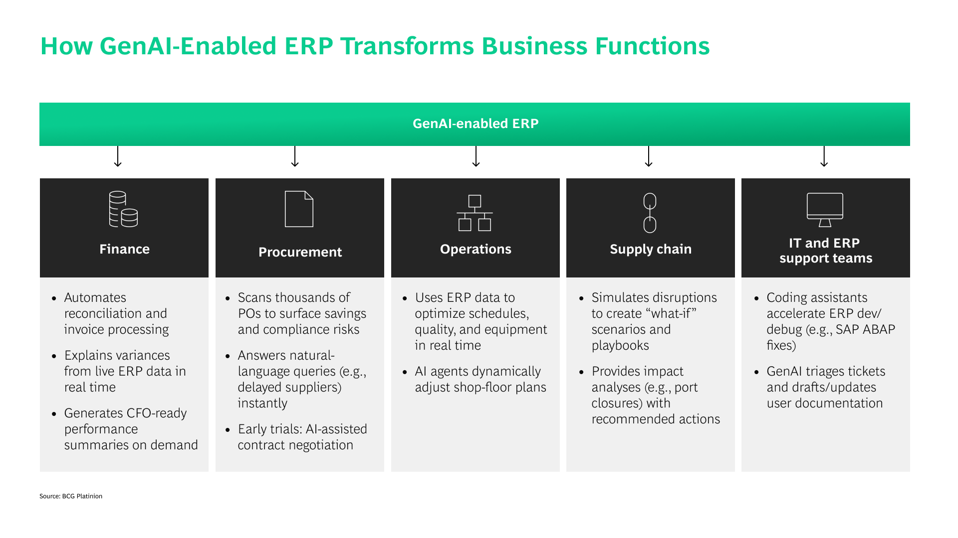 Across all of the possible GenAI applications we have explored, a consistent theme emerges: GenAI is turning ERP from systems of record into systems of intelligence.